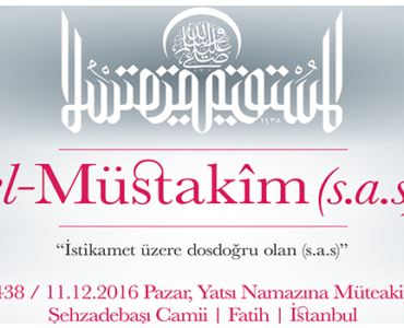 Kutlu Doğum – El Müstakim (SAS) Son Peygamber Platformu ve Binder’den Mevlid Kandili programı Son Peygamber Platformu ile İnsan ve Çevre Derneği Binder, Peygamber Efendimiz (sas)’in dünyaya teşriflerinin yıldönümü olan 12 Rebi’ül-evvel 1438, 11 Aralık 2016 Pazar akşamı, Fatih’teki Şehzadebaşı Camii’nde “el-Müstakîm – Hak Yol üzere dosdoğru olan (s.a.s).” temalı kandil programı tertip ediyor.